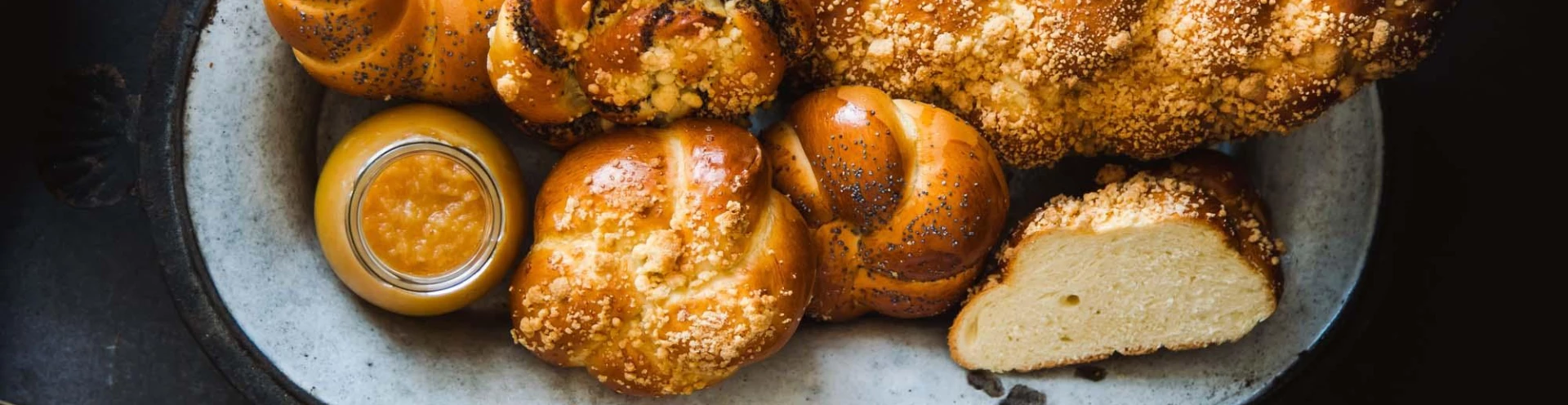 Po leżakowaniu zwinąć chałki rozłożyć na blachy i przed wsadzeniem do pieca posmarować roztrzepanym jajkiem i posypać kruszonką.