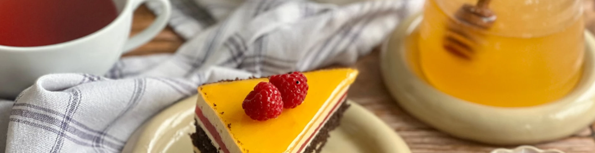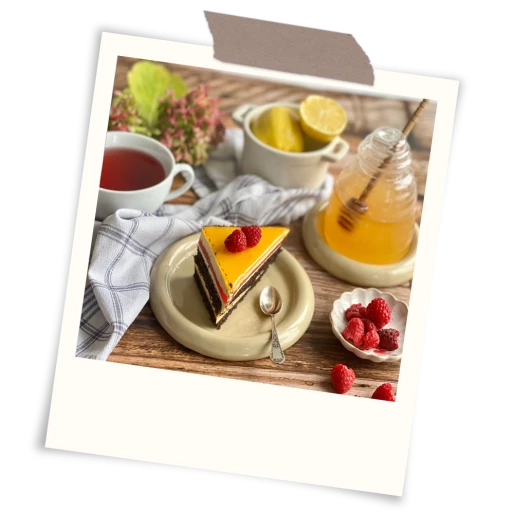 Górę dekorujemy, oblewamy podgrzanym do temperatury 40 °C nappage morelowym Fabbri.