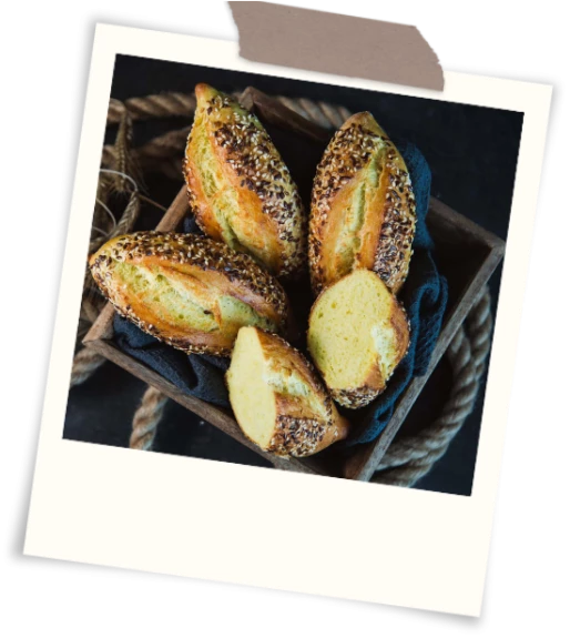 Przed wsadzeniem do pieca spryskać bułki wodą, posypać Dekorem Złocistym i dokonać nacięcia przez środek.