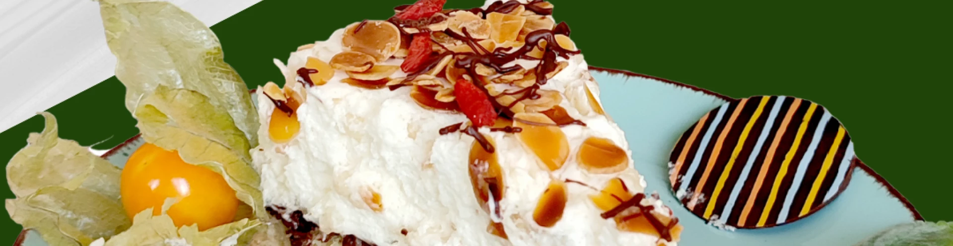 Całość posypujmy uprażonymi migdałami w płatkach i polewamy rozpuszczonym Nutty Cream i schładzamy.